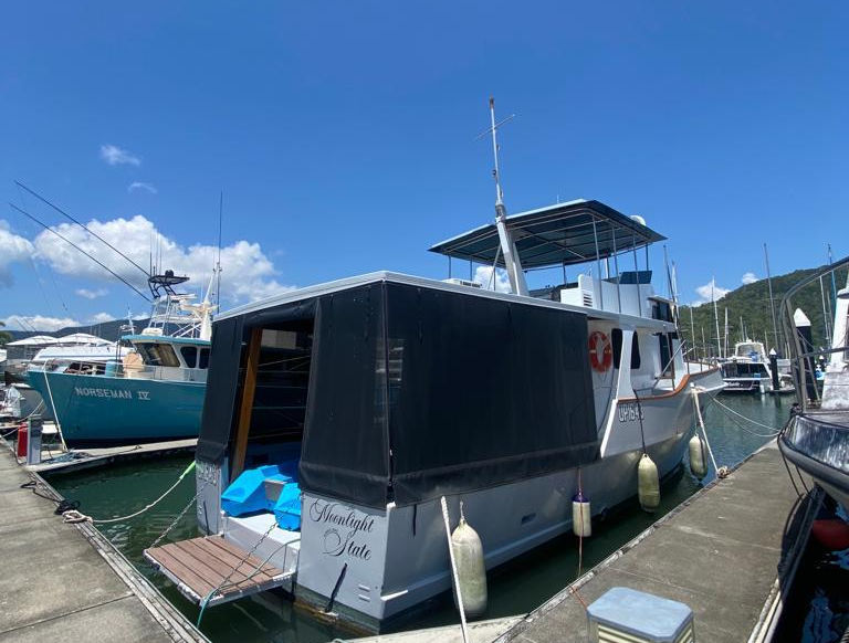 Fibreglass and timber construction, re painted approx. 3 years ago, also comes with 2016 poly craft tender and 5hp Yamaha, full custom roll up sunshades, Ray marine plotter